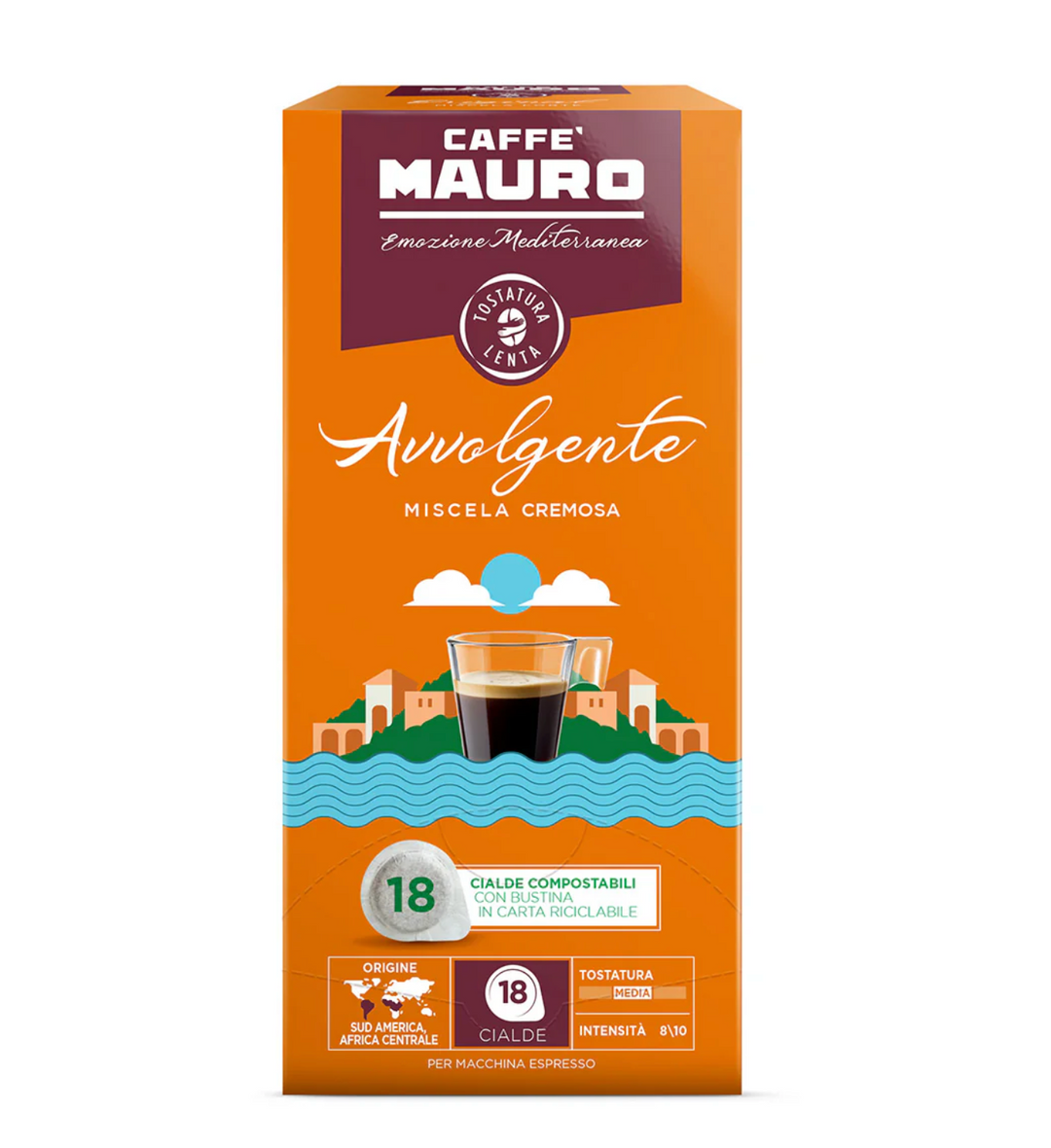 Mauro De Luxe, ESE Portionen. Ein mittelkräftiger würziger Kaffee mit ausgezeichneter Crema und aromatischem Geschmack.