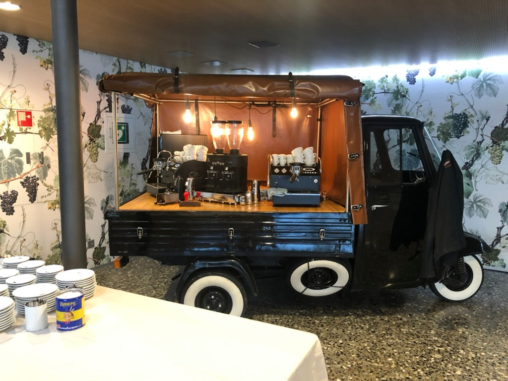 Die mobile Kaffee-Bar auf einer italienischen APE.